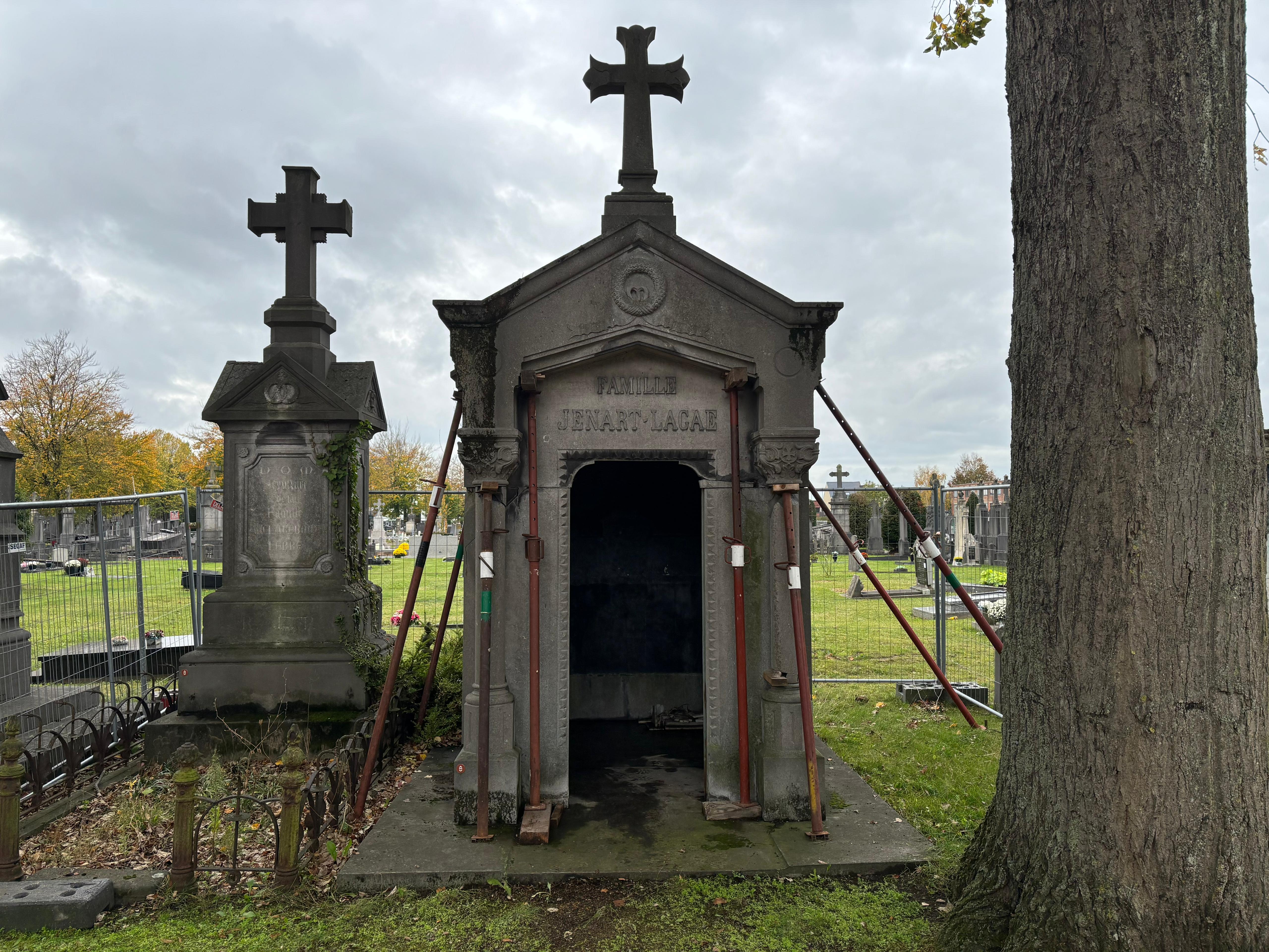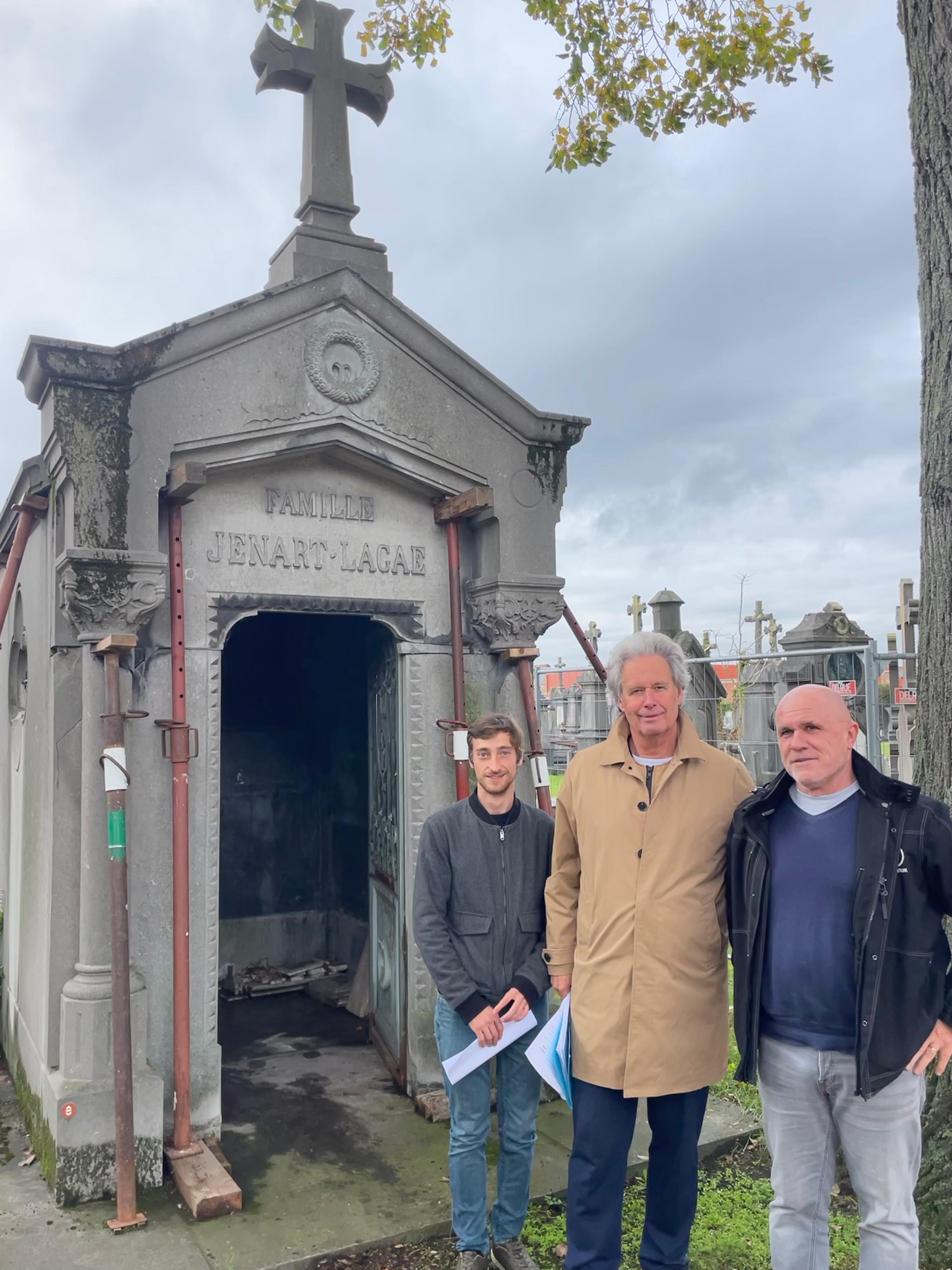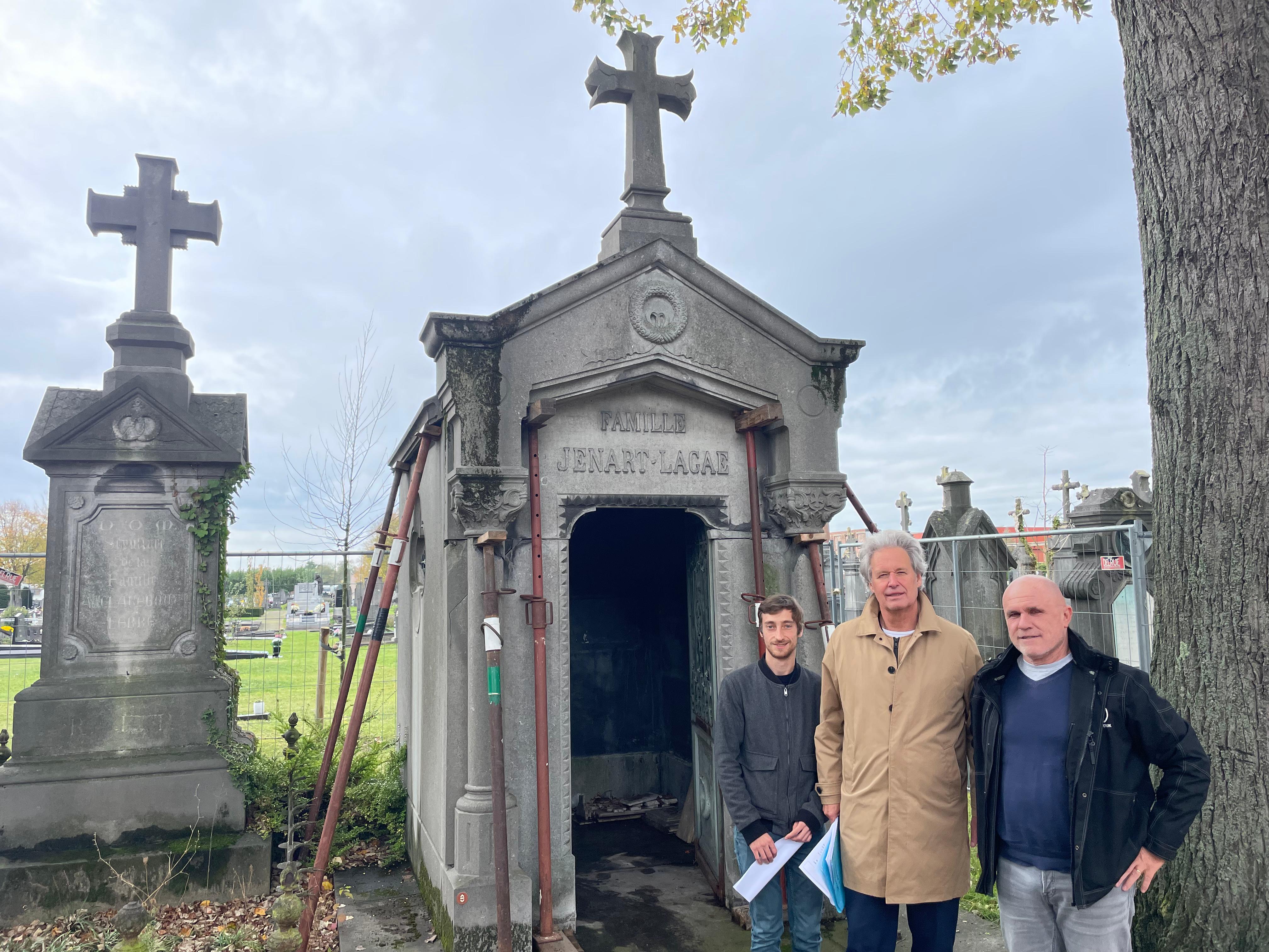 De stad investeert 78.000 euro in de restauratie van de eclectische grafkapel uit 1929. Deze werd bij de inventarisatie van de graven de hoogste funeraire waarde toegekend. De stad kiest voor de renovatie van deze grafkapel omdat deze recent werd overgedragen aan de stad en door de belangrijke ligging nabij de calvarieberg, waar veel historisch significante Kortrijkzanen in waardevolle graven hun laatste rustplaats vonden. Na de restauratie is het mogelijk om hier een 6 à 8-tal urnenkelders te voorzien voor tot 24 urnen.
