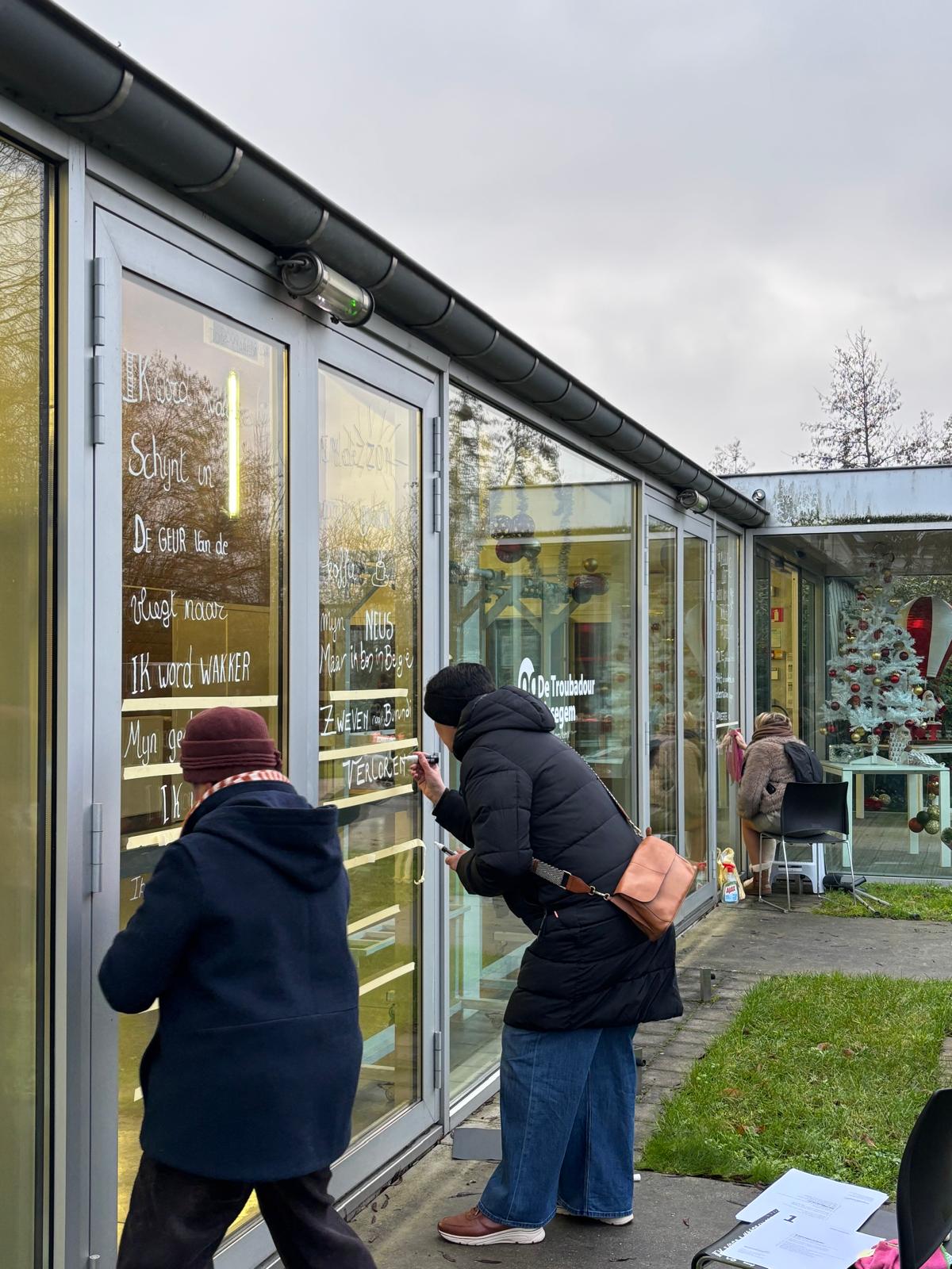 Vrijwilligers zullen de gedichten aanbrengen op de ramen. Daarvoor hebben zich in een mum van tijd 14 inwoners gemeld. Maar hoe breng je zo'n gedicht mooi aan op een raam? Dat ontdekken de vrijwilligers tijdens een workshop op 10 januari in OC De Troubadour. Ervaren raamtekenaar Agata Smok leert hen alle kneepjes van het vak.