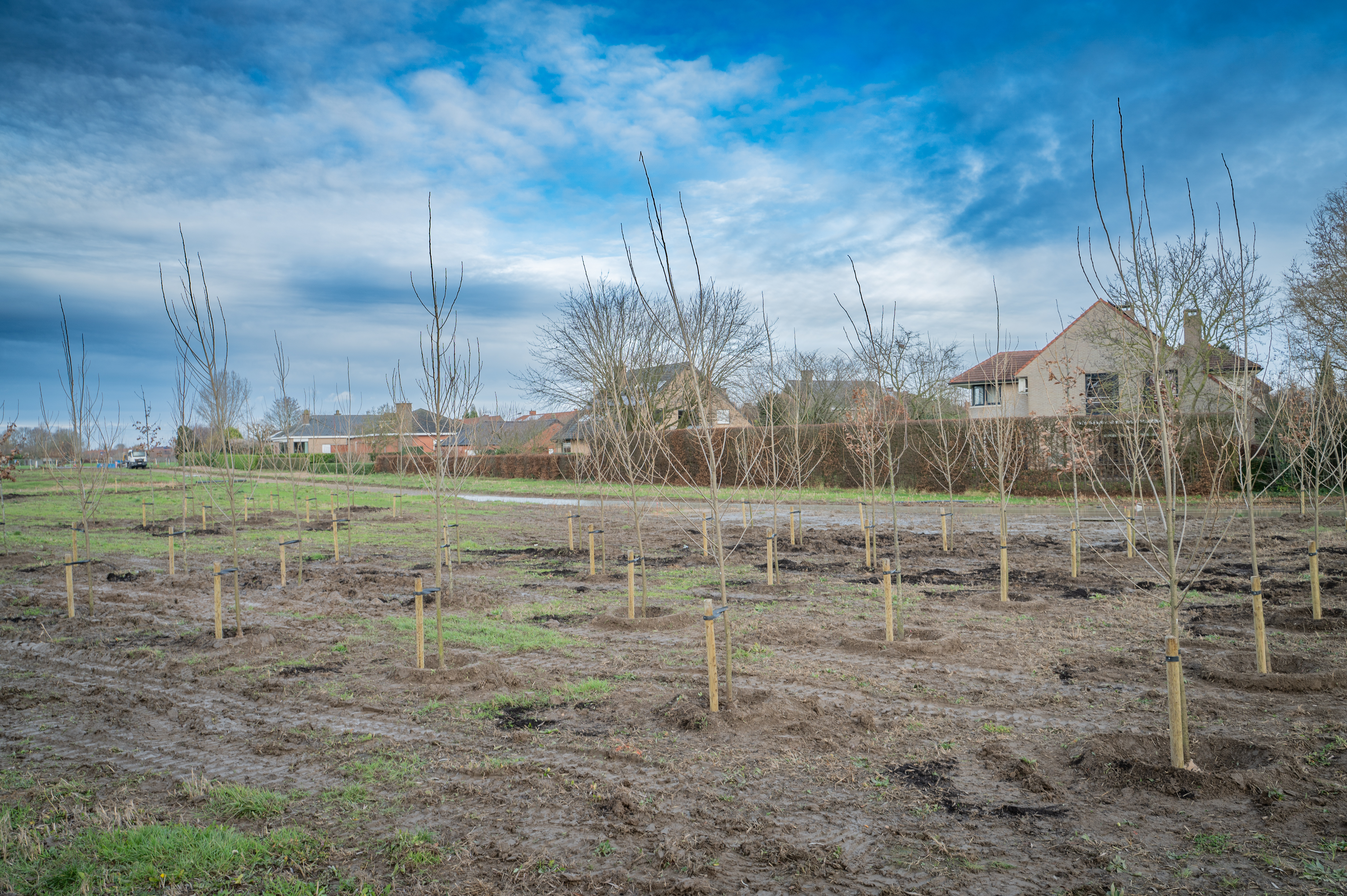 In 2019 maakten we bewust de keuze om deze gronden van 4ha aan te kopen voor 2,3 miljoen euro voor de aanleg van De Groene verbinding. Met de aanplant van de bomen zien we vandaag deze visie als een realisatie op het terrein. Tegen midden deze zomer is de zone tussen de Molenstraat en de Bozestraat afgewerkt. In april volgt de herinrichting van de Bozestraat met een verkeersplateau en wegversmallingen, als voorbereiding op het volgende traject. De verdere aanleg richting Watermolenwal en Izegemsestraat start in 2028, samen met de bouw van de nieuwe fietsbrug over de Heulebeek. Een gezamenlijke investering met de provincie van 5 miljoen euro.Wout Maddens, schepen van Stadsvernieuwing