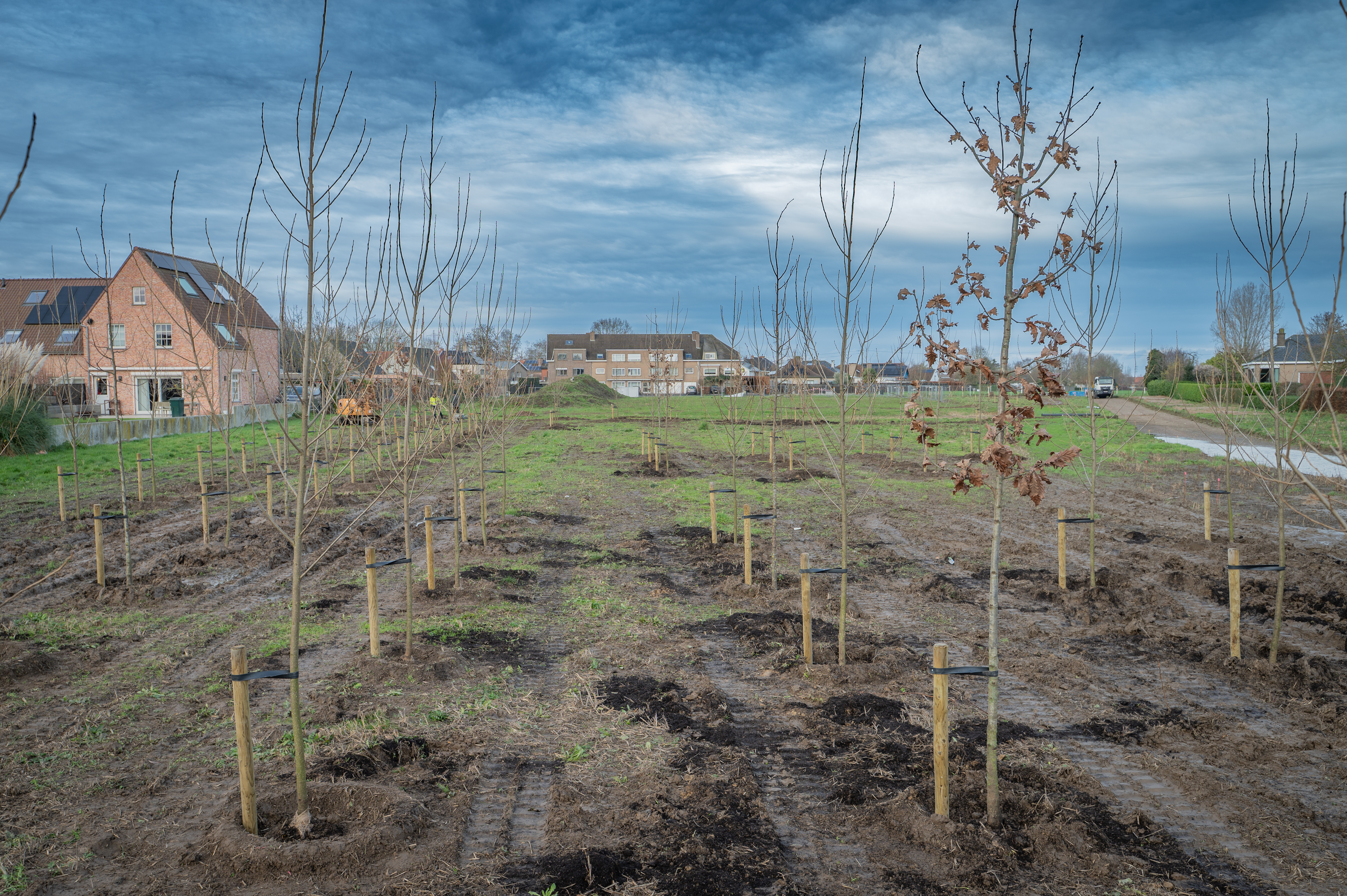 De Bozestraat deelt het toekomstig park op in twee zones. Het gedeelte tussen de Molenstraat en de Bozestraat zal meer in functie staan van wijk- en buurtgroen. Hier worden op dit moment 103 hoogstambomen aangeplant: 68 zwarte populieren, 21 wintereiken en 14 winterlindes. De populieren groeien snel en helpen om de akkergrond om te vormen tot natuurgebied met meer leven. De eiken en lindes groeien trager en zorgen op lange termijn voor een stabiele en duurzame omgeving. Deze combinatie zorgt voor een gevarieerd bos.