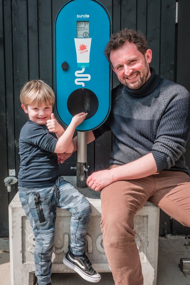 Schepen Bert Herrewyn met zoontje Daan aan de smotspot in De Warande (copyright: Kortrijk)